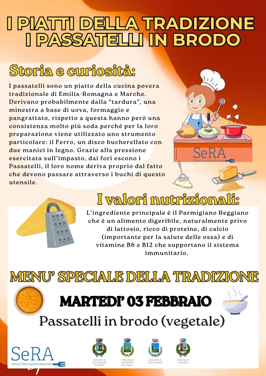 Con l'occasione abbiamo creato una locandina per condividere con voi qualche curiosità storiche e nutrizionali sui Passatelli, una pietanza tipica della nostra storia culinaria.